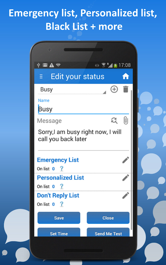 ✔ Personalized list - a list of people whom you want to auto reply with personalized message