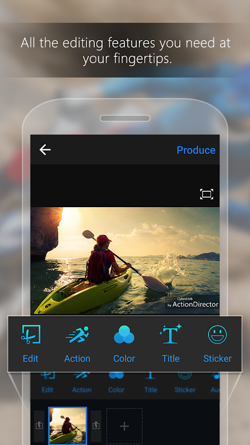 ActionDirector adalah satu-satunya aplikasi video editing yang tentu saja kalian butuhkan untuk merekam video, mengedit video, menerapkan efek video dan berbagi dengan teman-teman. Buat video dari aplikasi dengan bantuan tutorial editing film yang akan membimbing dan memberikan arahan pada kalian ketika menambahkan efek film aksi dan suntingan pada video yang kalian inginkan.